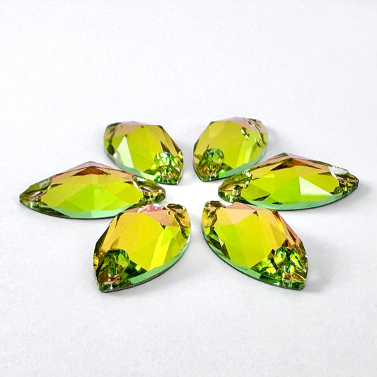 These glass crystal shapes have been sourced meticulously to ensure the absolute best quality for the price. Too many times in the past we have all had to compromise on quality for something we can afford. Chips, colour variations and broken sew holes are common place for a cheaper glass shape. While minor imperfections can still creep in once in a while, we are absolutely delighted with the crystals we have chosen for this range. We will be adding to this colour range on going - please don’t hesitate to get in touch if you have a particular colour requirement you can’t see offered right now.