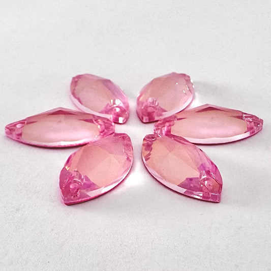 Double Buckle Edge Pink Glass Large Teardrop - Gold Setting