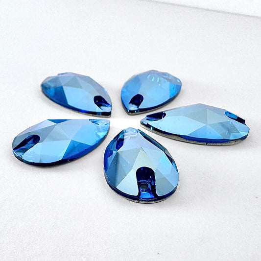 Double Buckle Edge Crystal AB Glass Large Teardrop - Silver Setting