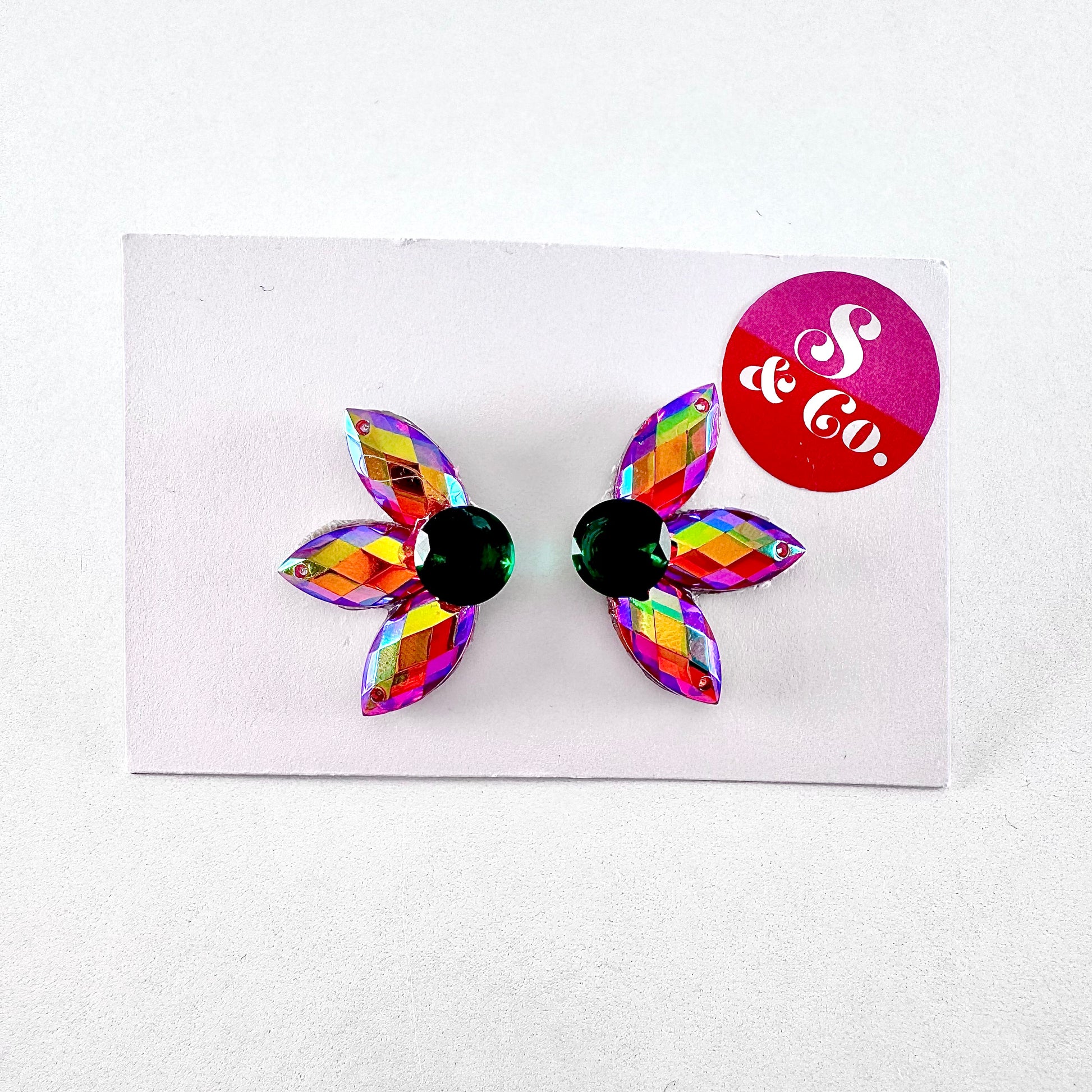 Earrings are made from our high quality acrylic crystals and come with standard stainless steel pierced ear post and back.