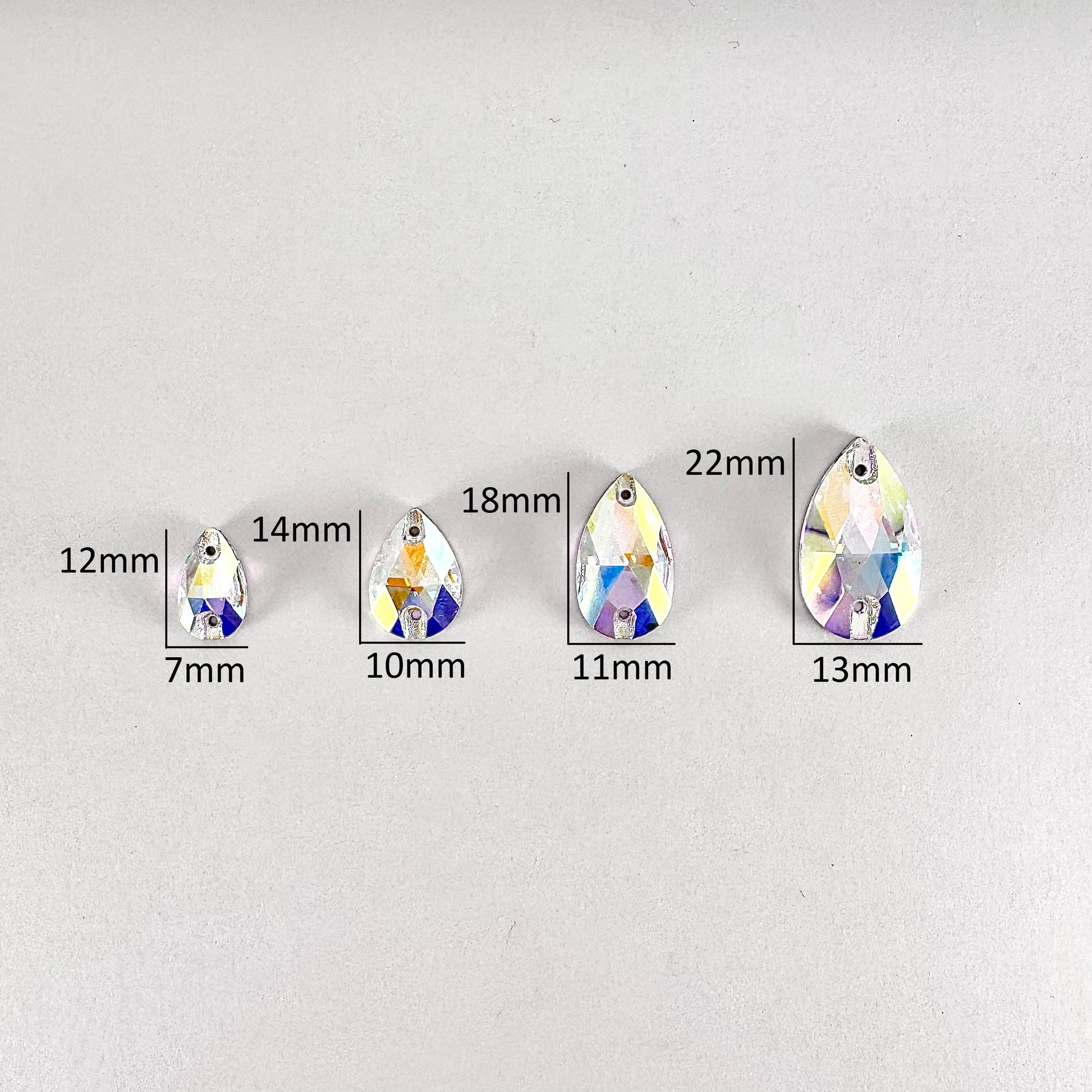 It is common for larger crystal shapes to appear slight different in colour than smaller shapes due to the amount of refracted light within the crystal. Any colour variation is much less pronounced once the crystals are put on fabric.