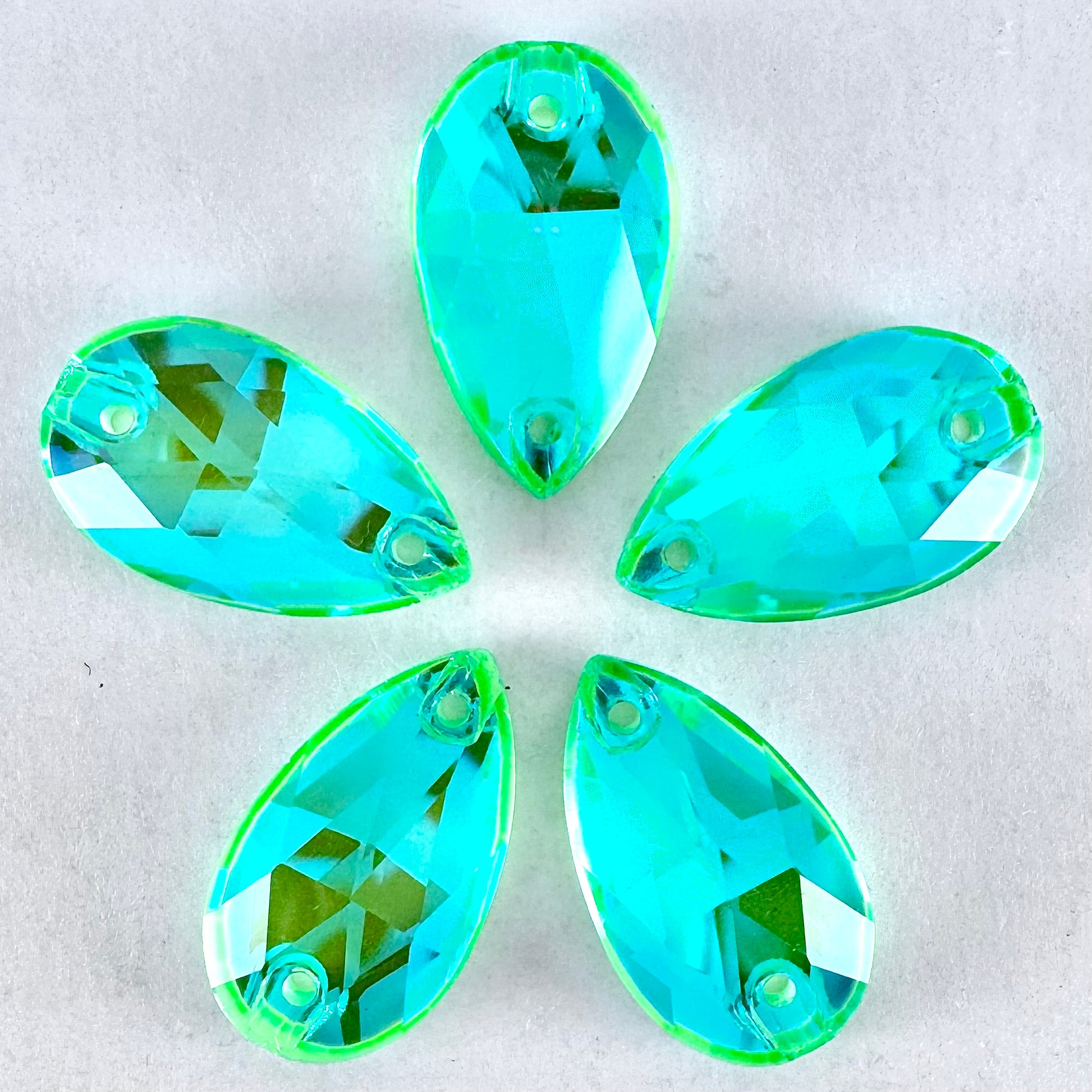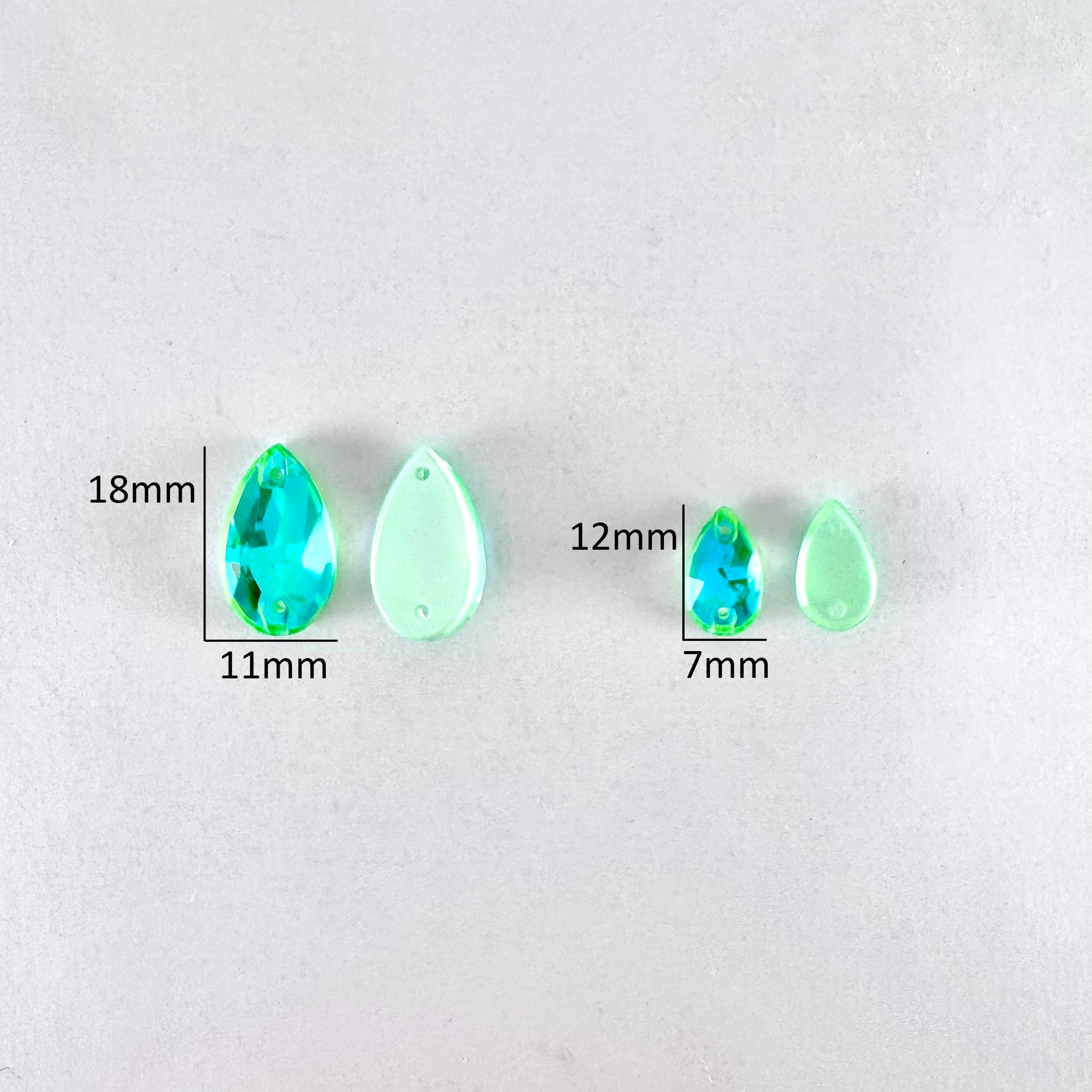 It is common for larger crystal shapes to appear slight different in colour than smaller shapes due to the amount of refracted light within the crystal. Any colour variation is much less pronounced once the crystals are put on fabric.