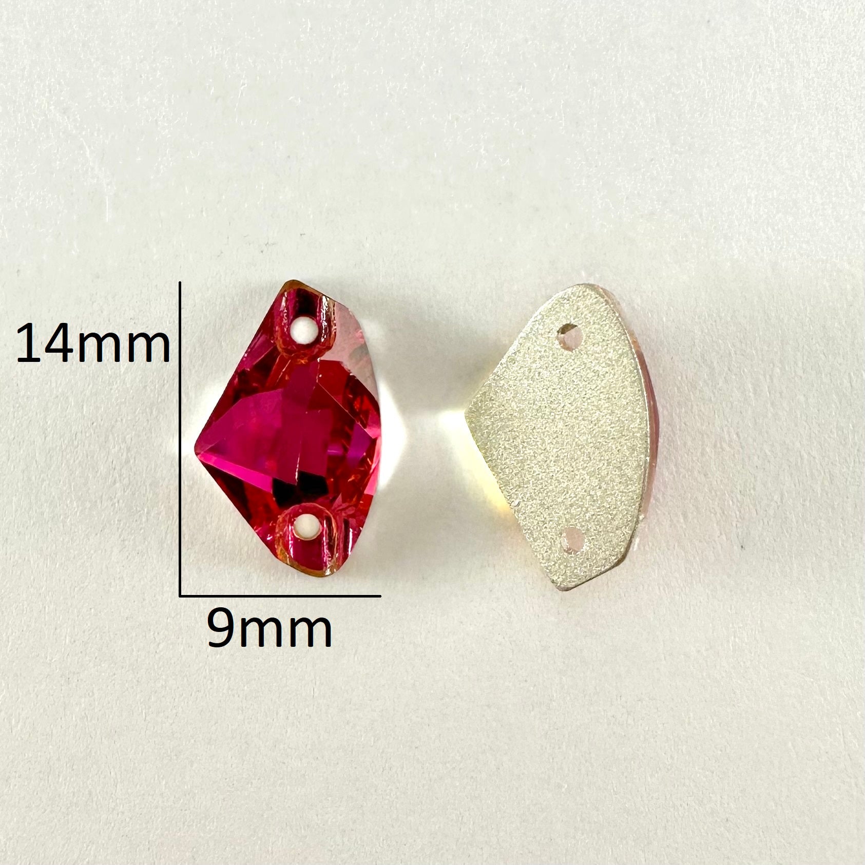 It is common for larger crystal shapes to appear slight different in colour than smaller shapes due to the amount of refracted light within the crystal. Any colour variation is much less pronounced once the crystals are put on fabric.