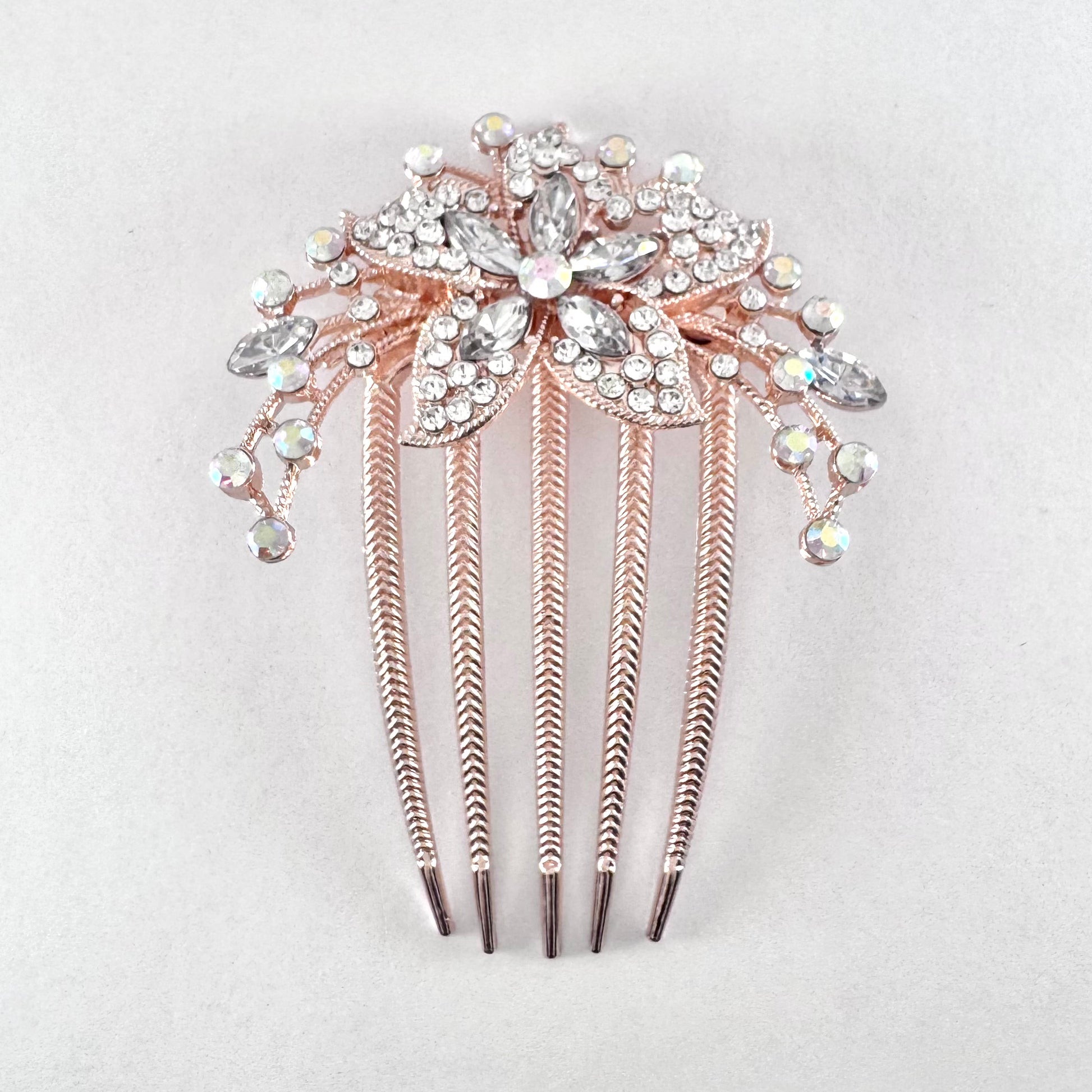 The decoration is approximately 6.5cm wide x 3.5cm tall, the overall height to the bottom of the comb is 8.5cm.