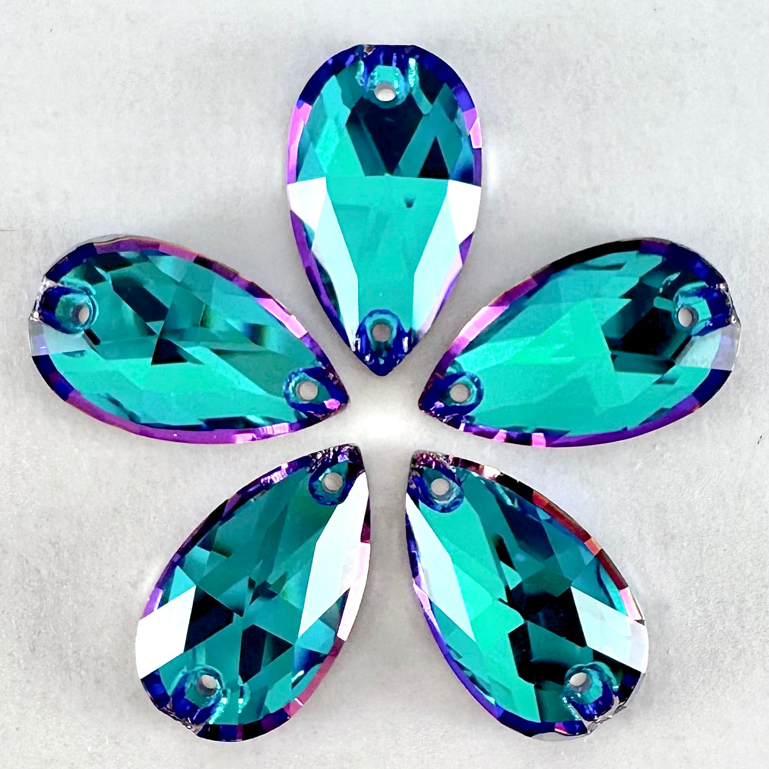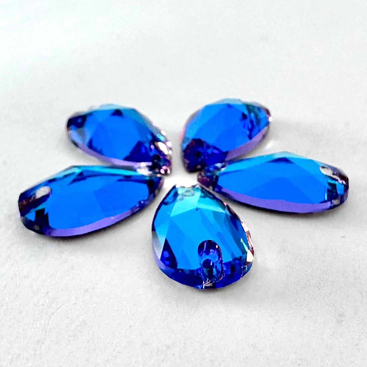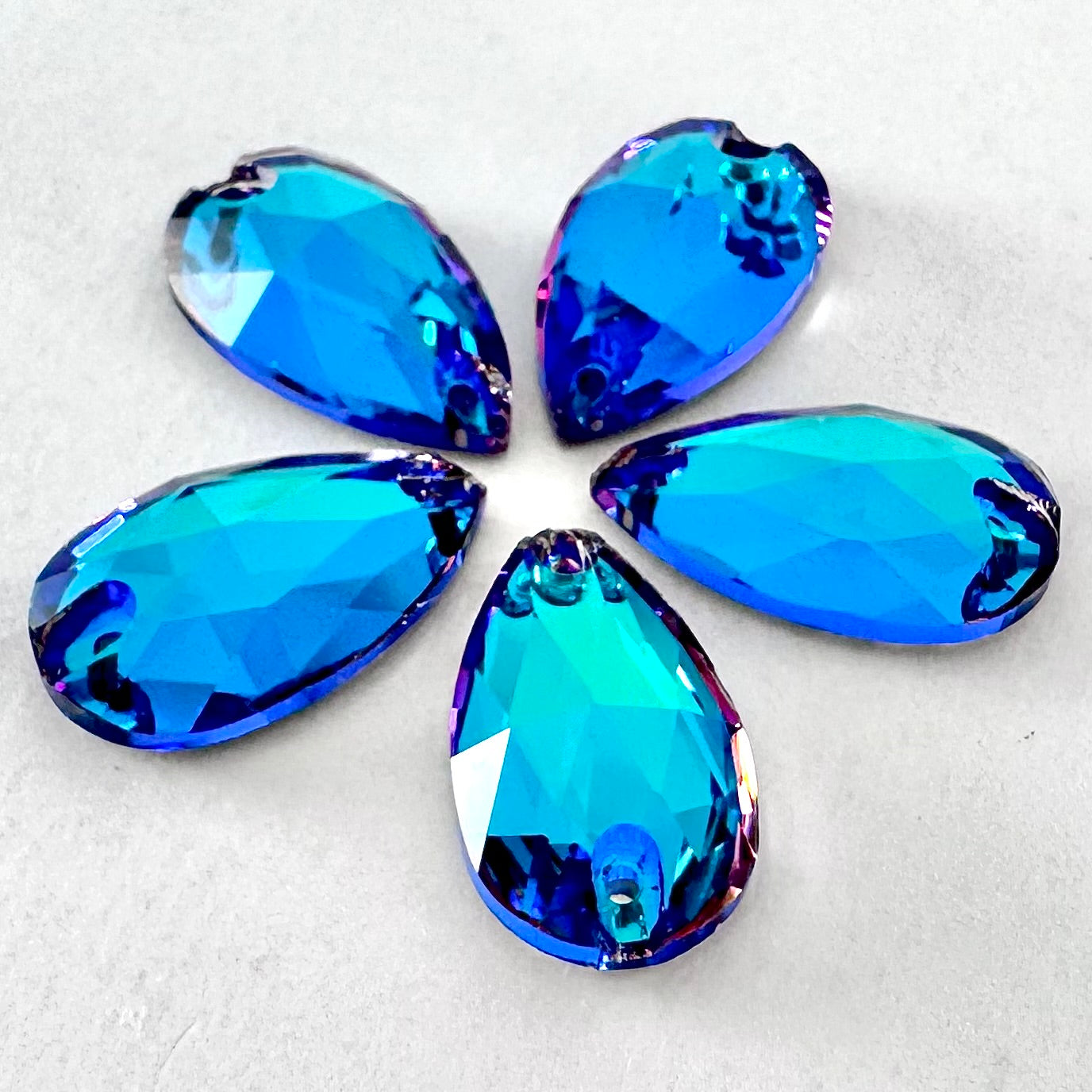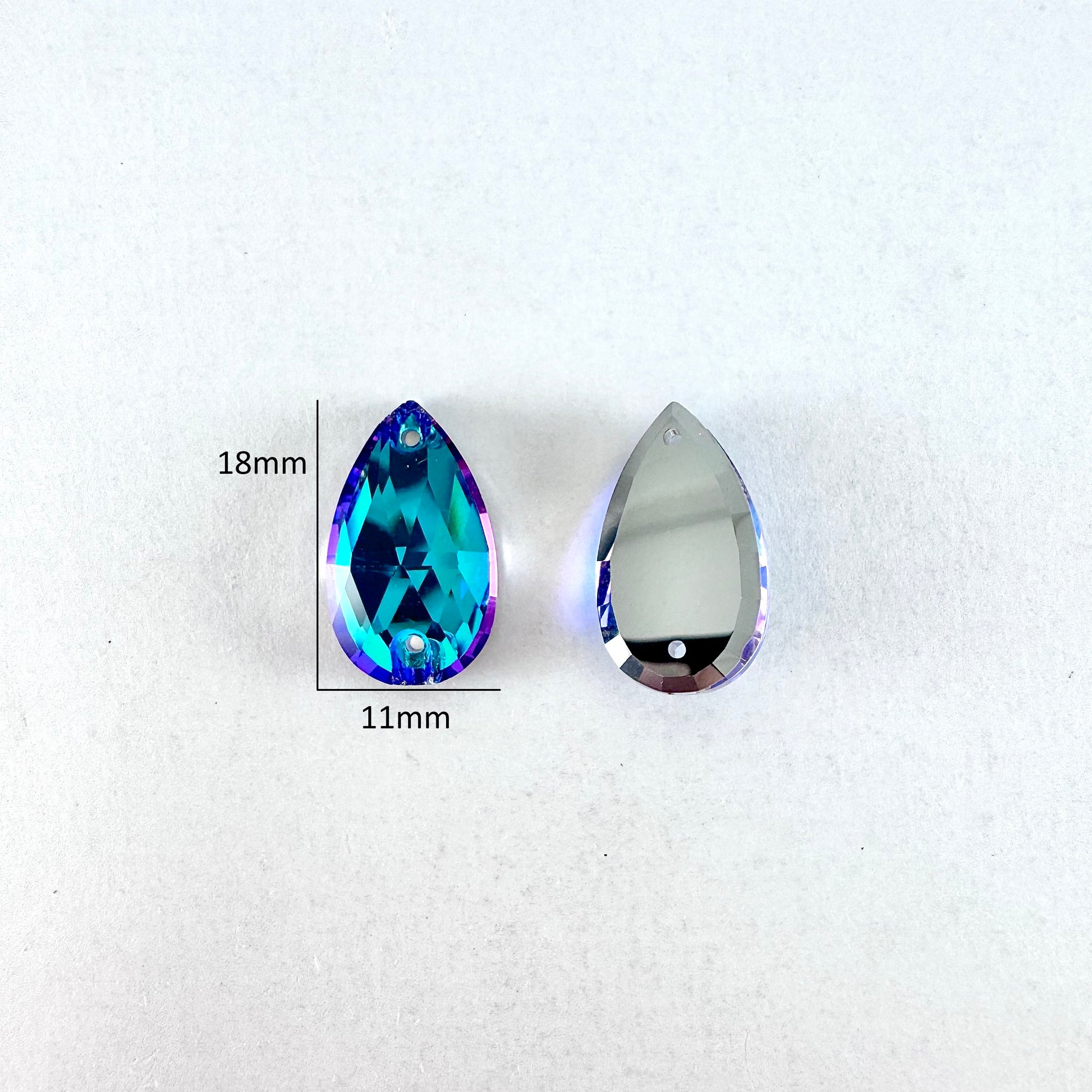It is common for larger crystal shapes to appear slight different in colour than smaller shapes due to the amount of refracted light within the crystal. Any colour variation is much less pronounced once the crystals are put on fabric.