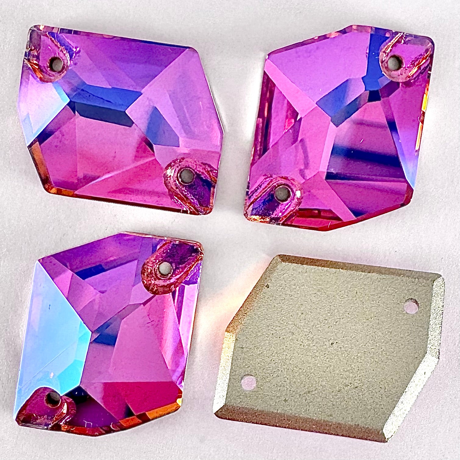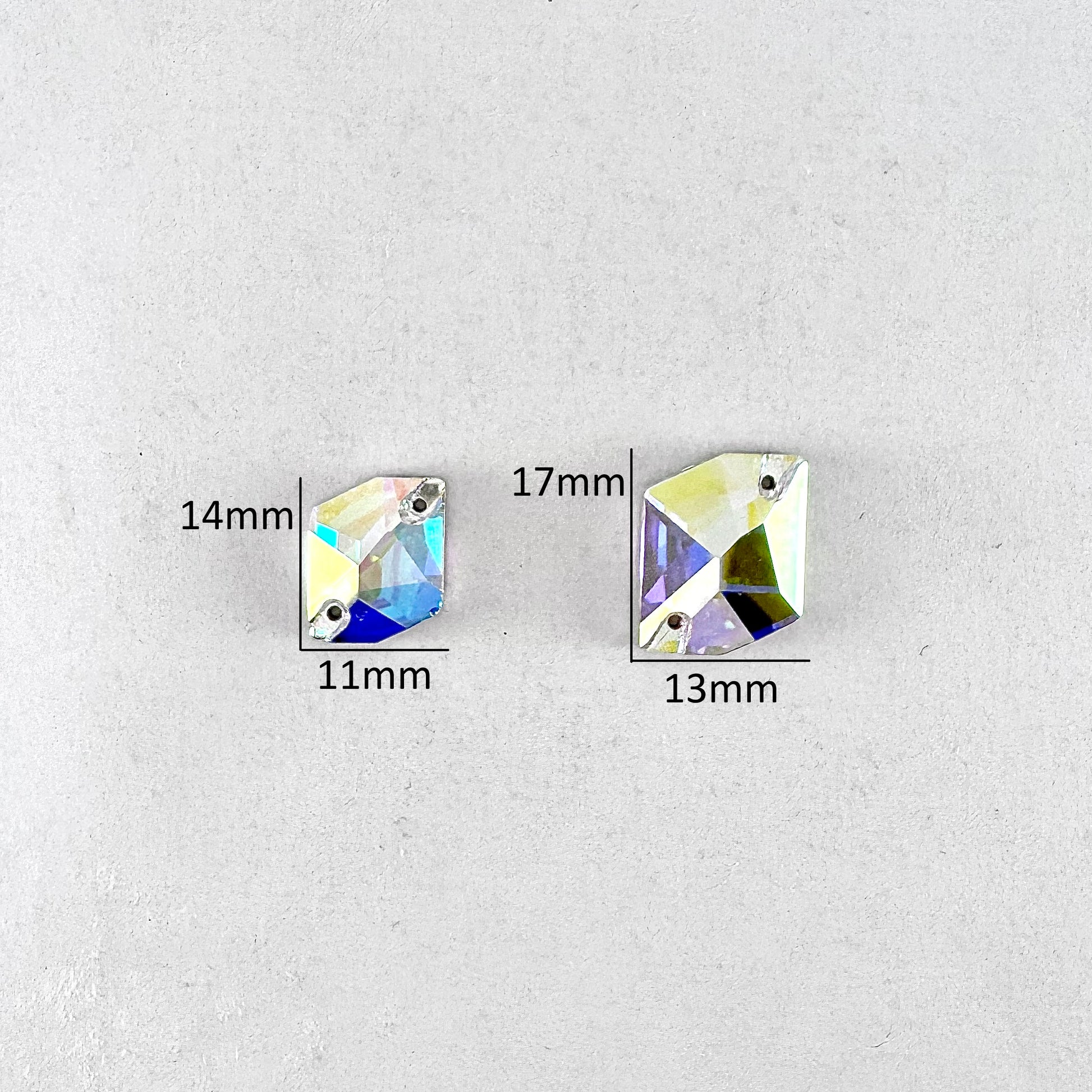 It is common for larger crystal shapes to appear slight different in colour than smaller shapes due to the amount of refracted light within the crystal. Any colour variation is much less pronounced once the crystals are put on fabric.
