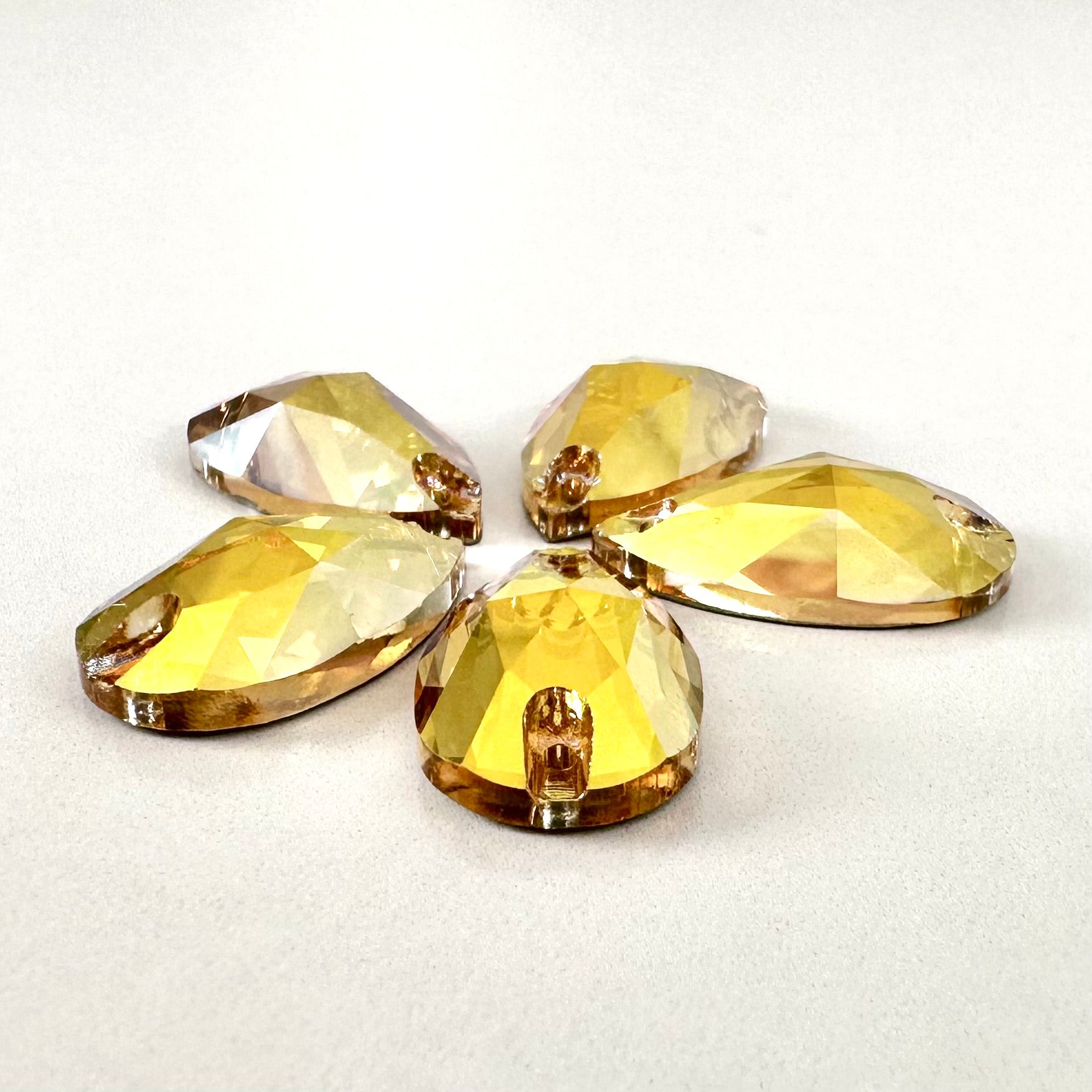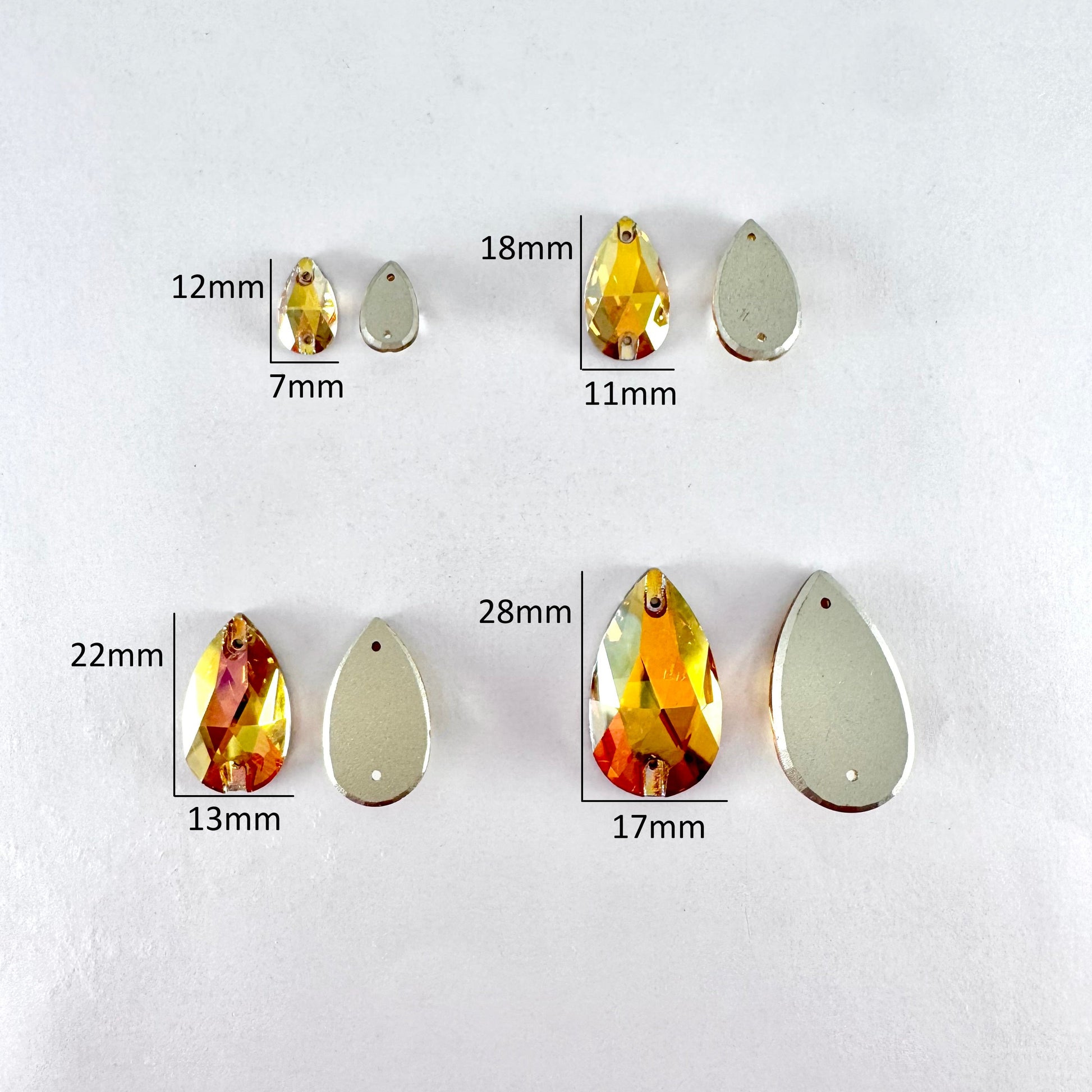 It is common for larger crystal shapes to appear slight different in colour than smaller shapes due to the amount of refracted light within the crystal. Any colour variation is much less pronounced once the crystals are put on fabric.
