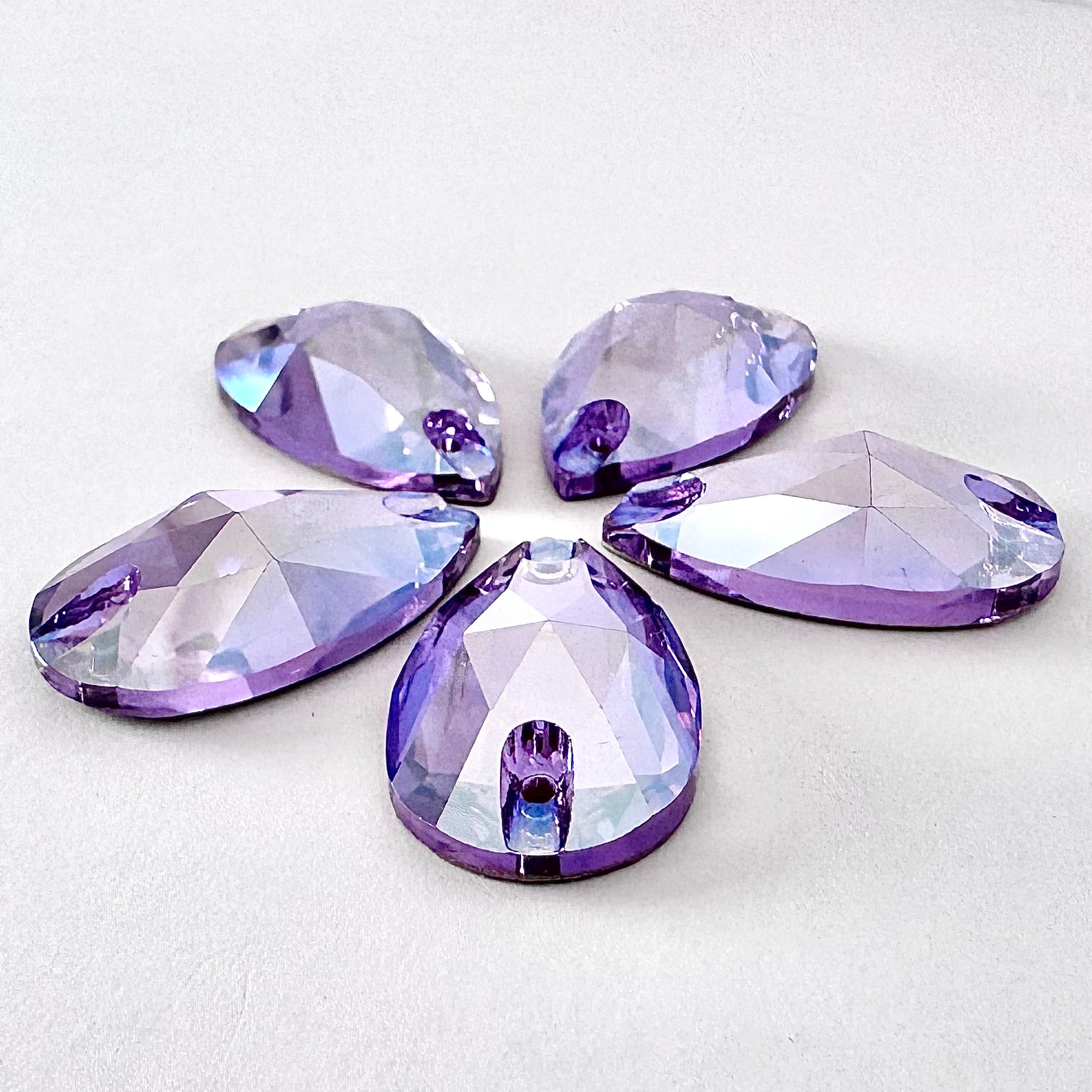 It is common for larger crystal shapes to appear slight different in colour than smaller shapes due to the amount of refracted light within the crystal. Any colour variation is much less pronounced once the crystals are put on fabric.